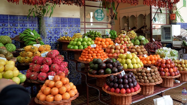 So richtig zum Anbeißen schaut das Obst in der Markthalle in der Altstadt von Funchal aus: Glänzend geputzt, kunstvoll aufgetürmt. So bunt wie die Blumeninsel insgesamt. Wenn Sie jedoch Ihre Geldbörse schonen wollen, sollten Sie die madeirensischen Früchte anderswo kaufen: Das Angebot bei den vielen kleinen Marktständen in der Stadt, aber auch in den Supermärkten ist genauso vielfältig, aber bedeutend günstiger. Dennoch sollten Sie die Markthalle besuchen - und wenn es nur für farbenfrohe Erinnerungsfotos oder Instagram-Posts ist.