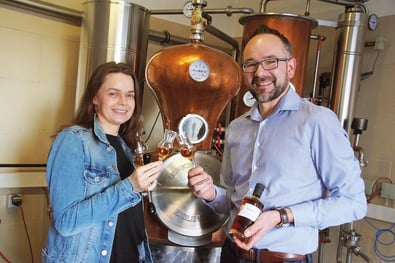 Schließlich gibt's ja sehr feine Adressen für Zwischenstopps. Die Honky-Destillerie zum Beispiel. Bei Regina und Helmut Gumpenberger erfahre ich einiges über die Kunst des Rum- und Whisky-Brennens und darf die edlen Brände auch verkosten.
