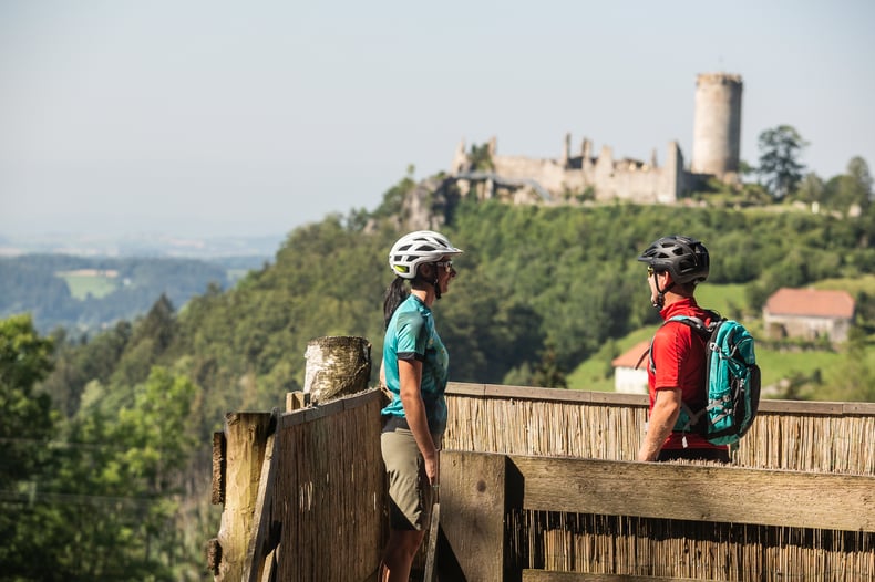 Schließlich erreichen wir das Etappen-Ziel Waxenberg mit Ruine und Schloss.