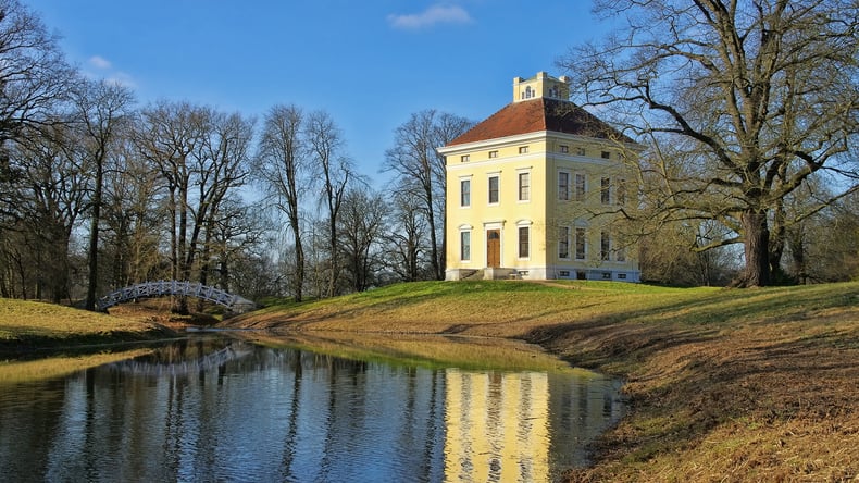 Nicht weit entfernt vom Gartenreich Dessau-Wörlitz liegt das Luisium, ein Geschenk des Fürsten an seine Frau Luise. Außen schlicht, innen bezaubernd, bietet dieses klassizistische Gebäude eine besondere Atmosphäre mit Lesungen, Konzerten und einer Parkanlage, die an eine Auenlandschaft erinnert.