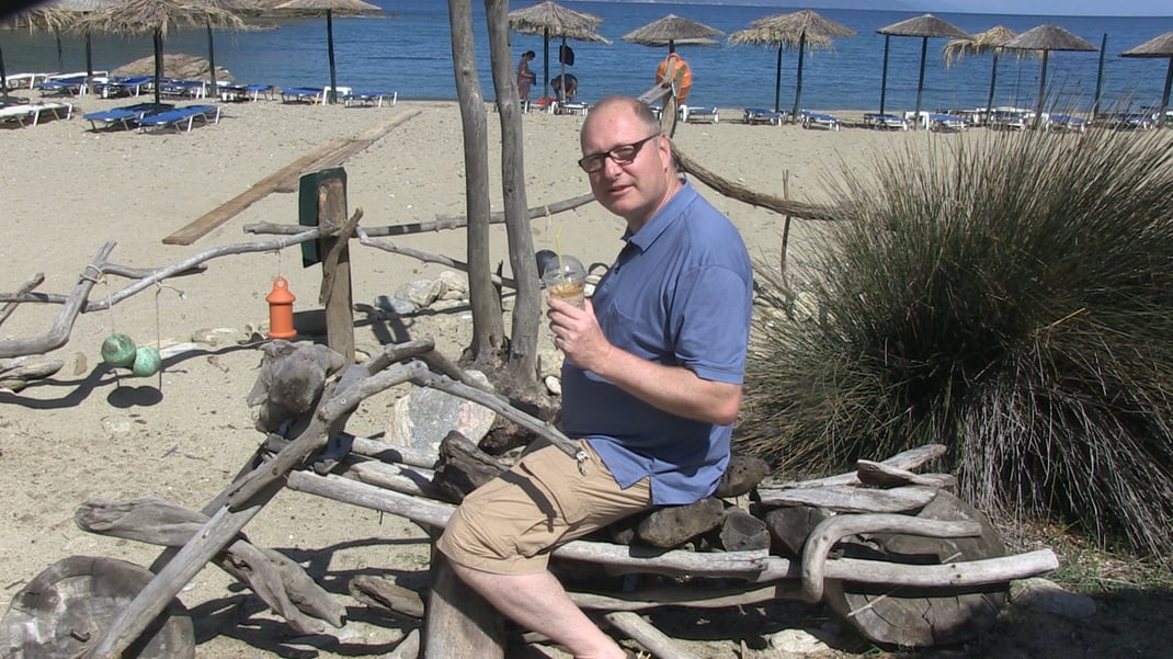 Aber man kann auf Skiathos nicht nur auf der faulen Haut liegen oder schwimmen, es gibt hier auch mehr als 26 Wanderrouten und ein Wegenetz von mehr als 200 Kilometer gut beschilderten Wanderwegen. Das verdanken Wanderfans einem gebürtigen Deutschen: Ortwin Widmann hat sich in einem Urlaub in Skiathos verliebt und ist vor mehr als 20 Jahren mit seiner Frau hierher ausgewandert. Im Laufe der Zeit hat er immer mehr Wanderstrecken markiert und zum Teil auch uralte Pfade freigelegt. Sein Lieblingsweg ist die Tour durch den „Märchenwald“. Warum? Weil man so eine Landschaft in Griechenland nicht unbedingt erwarten würde: Wasserfälle, Bäche, Jahrtausende alte Platanen. Und: Es spukt hier! Ich habe tatsächlich Kobolde gesehen – und gefilmt. Sehen Sie selbst.