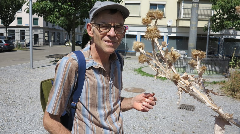 Ein Bezirk, in den sich nicht viele Touristen verirren, ist Wiedikon, ebenfalls im Westen der Stadt. Hier bin ich mit dem stadtbekannten Guerilla-Gärtner Maurice Maggi durch die Straßen spaziert, der dort überall "Blumen-Graffiti" gesät hat: Er hat anfangs illegal Malven angesetzt, bis die ahnungslosen Bürger sich bei der Stadtverwaltung für den Wildwuchs bedankt haben. So wurde Maurice als wilder Gärtner etabliert. Manchmal macht er Koch-Sessions mit essbaren Pflanzen aus der Stadt mitten am Straßen-Grünstreifen. In seinem Buch "essbare Stadt" verrät der gelernte Koch Rezepte mit urbanen Zutaten. Seine neueste Lieblingspflanze ist die Eselsdistel, für deren Verbreitung er nun sorgt. Sie lässt sich wie Artischocken zubereiten.